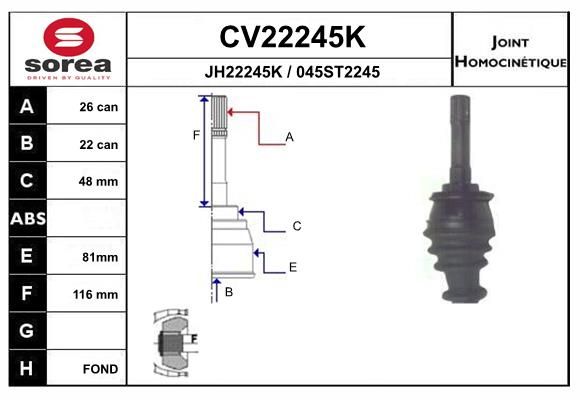 Тип соединения / сочленения : Шарнир равных угловых скоростей