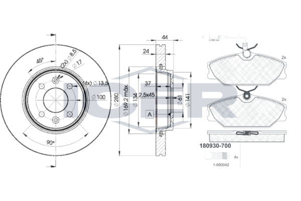 Тип тормозного диска : цельный