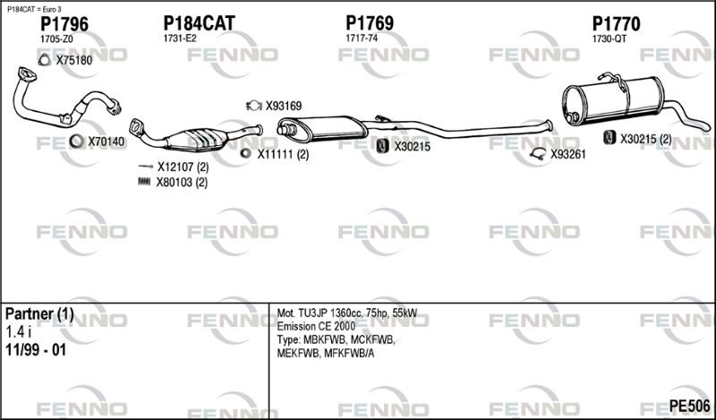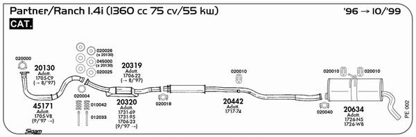 применимо для транспортных средств с года постройки : 07.1996 применимо для транспортных средств до года постройки : 10.1997 подходит для типа автомобиля : универсал для двигателя № : TU3JP Версия : Car-derived Van Версия : 5BKFXD Версия : 5BKFXE Версия : 5CKFXD Версия : 5CKFXE Версия : 5DHDZE Версия : 5FKFXD Версия : 5FKFXE Код оснащения : RP No.>07636 Норма выхлопных газов : Euro 2
