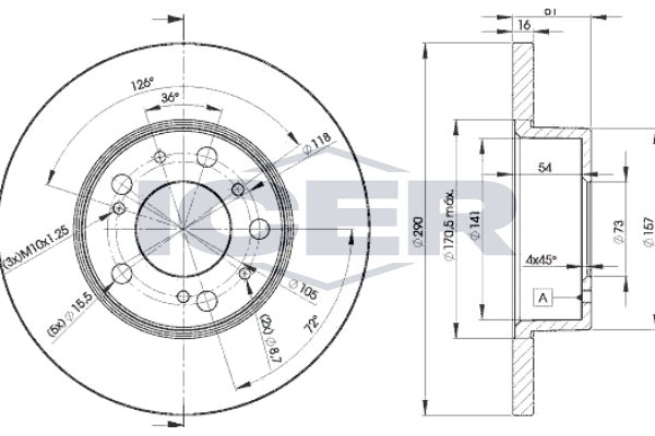 Расположение/число отверстий : 10/5