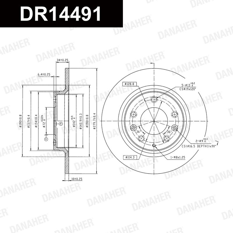Тип тормозного диска : цельный