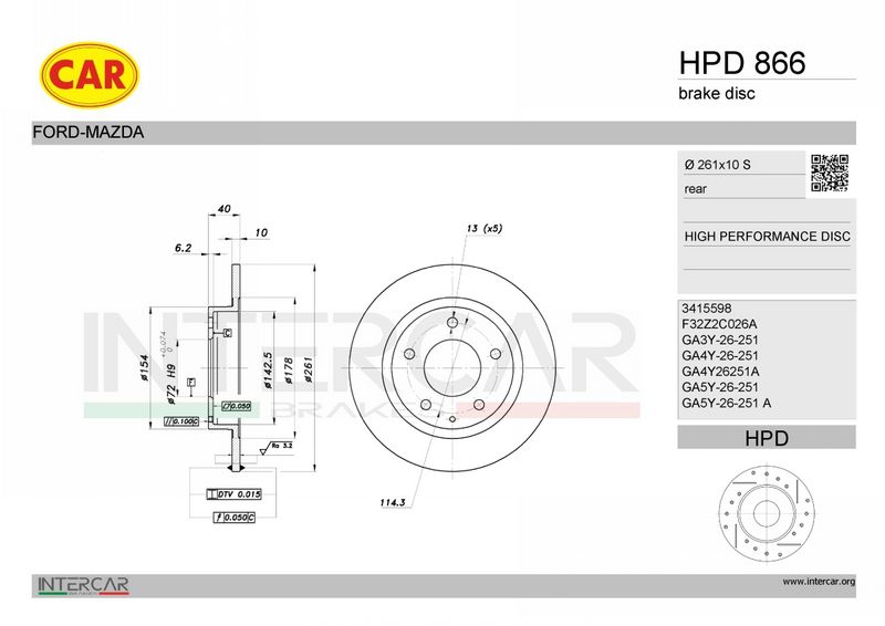 Тип тормозного диска : перфорированный