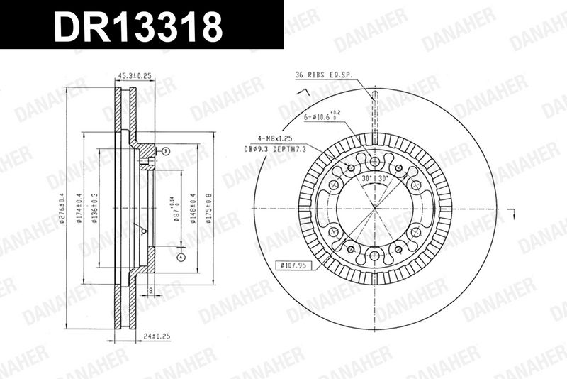 Толщина тормозного диска (мм) : 8