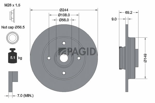 Толщина тормозного диска (мм) : 9