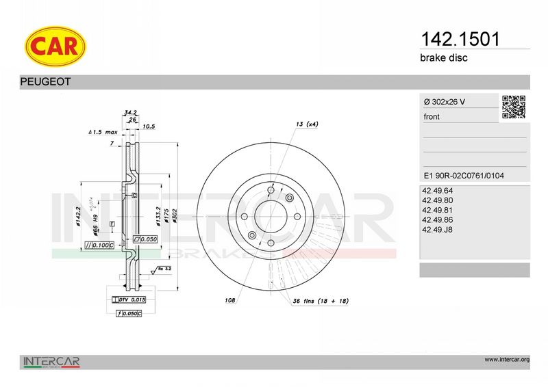 выполняет нормы ЕЭК : ECE-R90