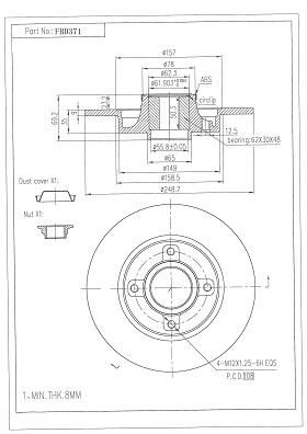 Толщина тормозного диска (мм) : 8