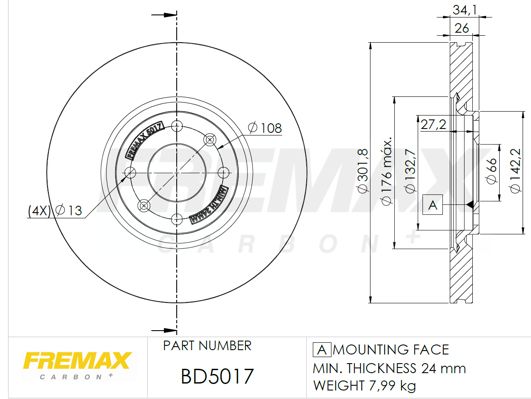 Толщина тормозного диска (мм) : 26