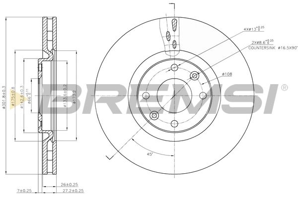 Тип тормозного диска : вентилируемый