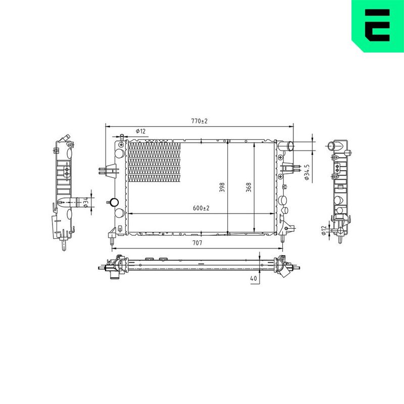 Размеры радиатора : 600x370x34