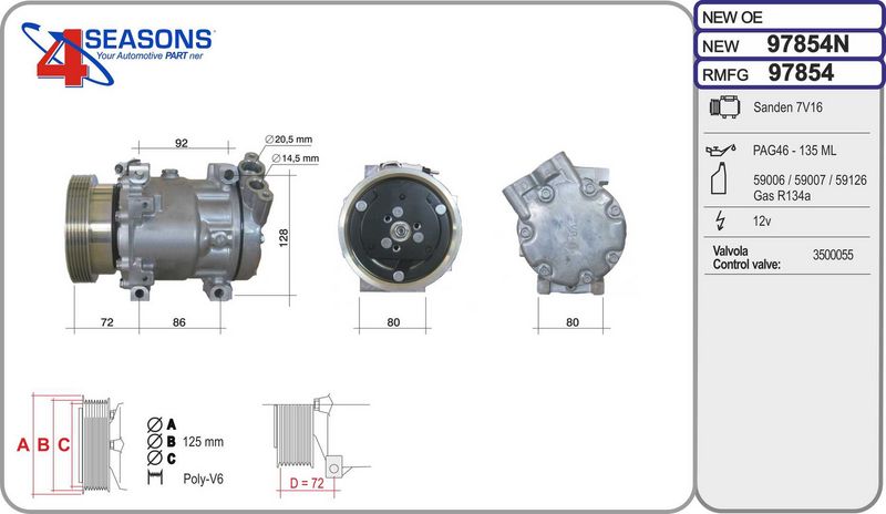 ограничение производителя : SANDEN-EQUIVALENT