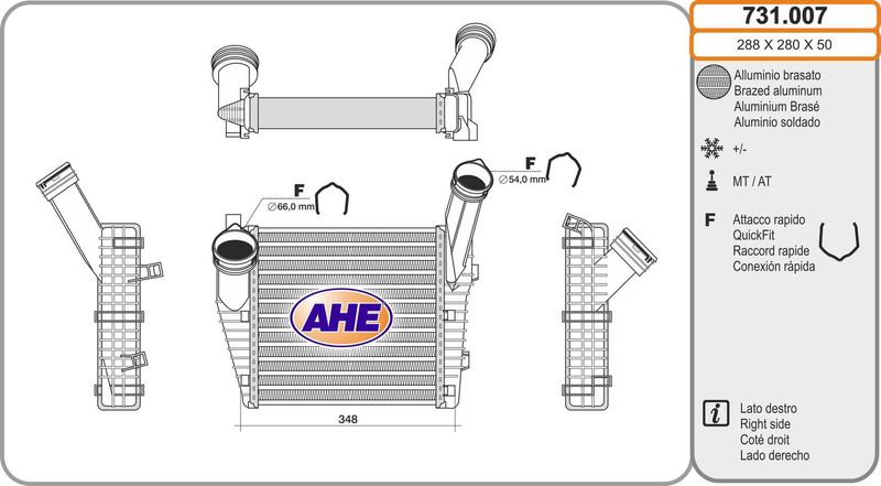 Размеры радиатора : 288 x 292 x 50 mm