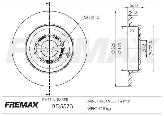 Толщина тормозного диска (мм) : 18
