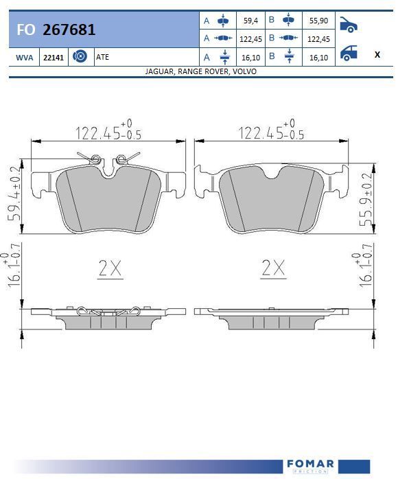 Комплект тормозных колодок, дисковый тормоз