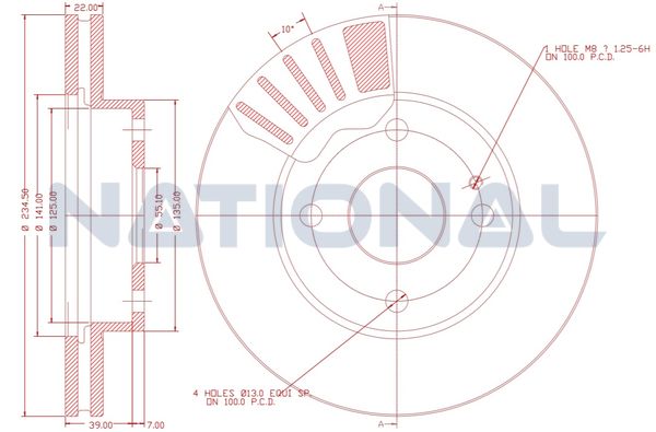 Толщина тормозного диска (мм) : 10