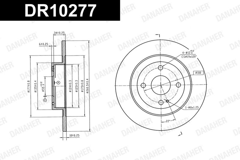 Толщина тормозного диска (мм) : 22