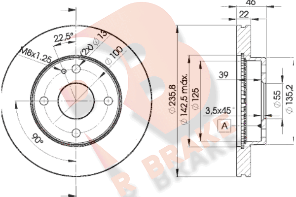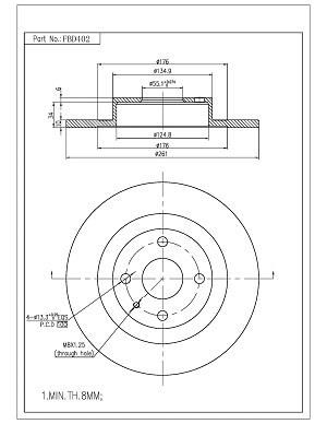 Тип тормозного диска : цельный