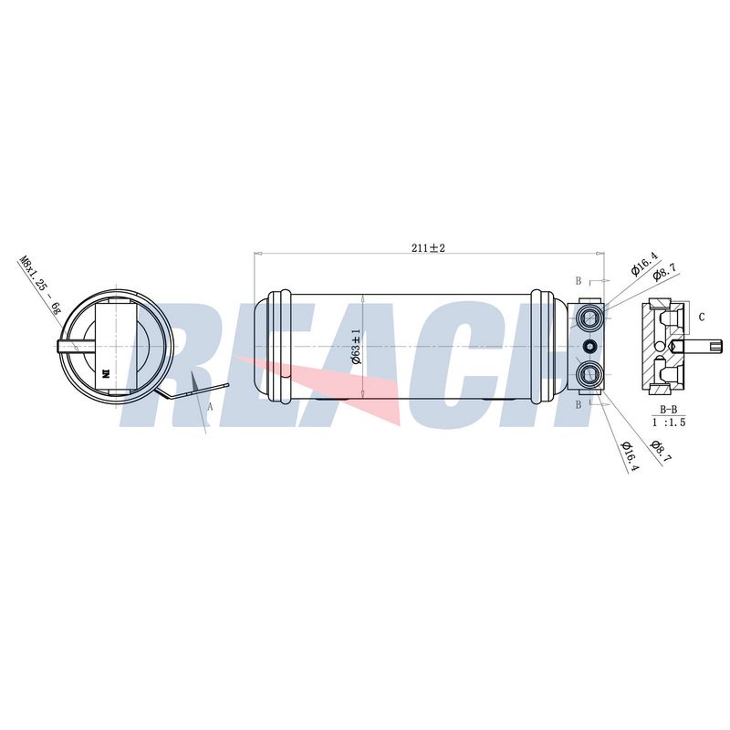 Диаметр [мм] : 63 Высота [мм] : 210 Материал : сталь Хладагент : R 134a